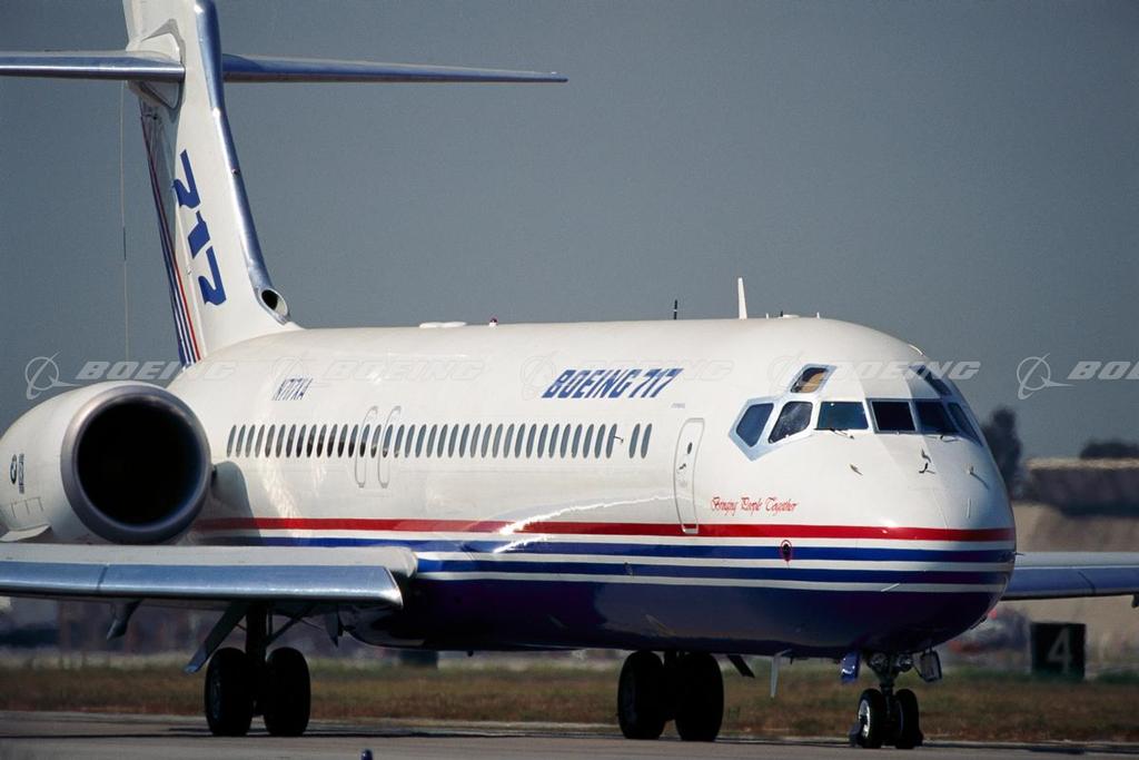 The 717 is a full-size twinjet designed specifically for the short-range, 100-seat regional airline market and is a very efficient and exceptionally quiet airplane. Its advanced technologies and rugged simplicity of design allow a quick turnaround time at a wide range of airports, so crew and passengers spend less time on the ground. It makes effective use of today's technology to lower operating costs, reduce noise and emissions, and provide big jet comfort. The airplane, formerly MD-95, was designated the Boeing 717 following the merger of McDonnell Douglas and The Boeing Company in 1997. In early 2005, after careful assessment of the challenging 100-seat market, Boeing announced that it will conclude 717 production in 2006 after delivering on current customer commitments.