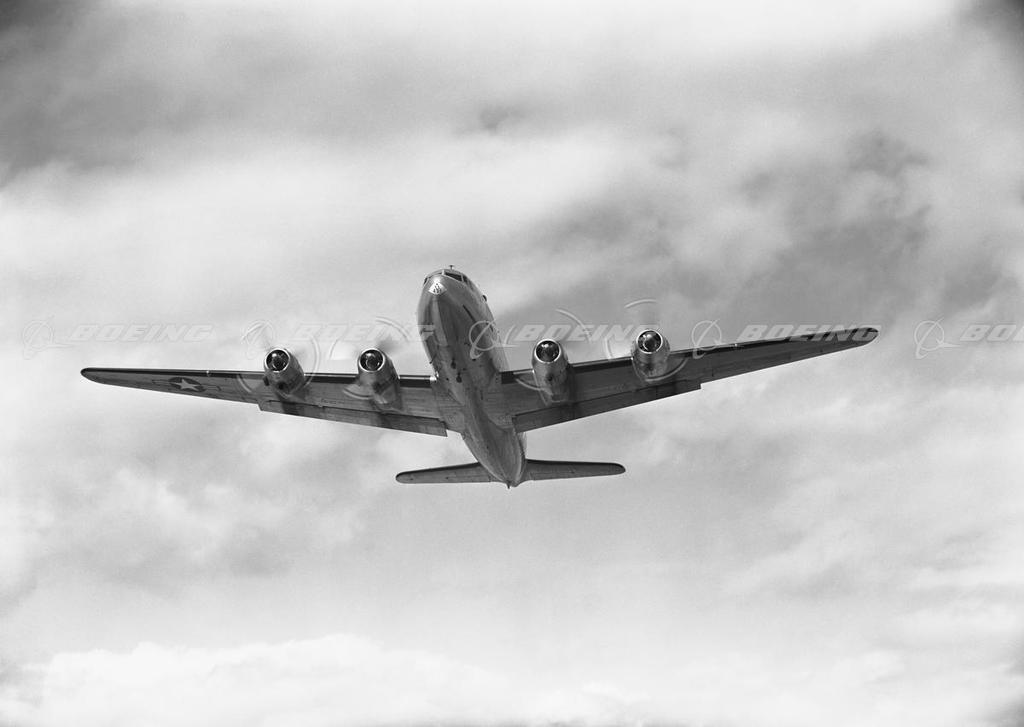 Douglas C-54 Skymaster (1942-1946): America's entry into World War II resulted in the U.S. Army taking over commercial DC-4 production before the first airliner could be completed. The plane made its first flight in February 1942 under the army designation C-54 Skymaster. Modifications to the original design included extra fuel tanks, a reinforced fuselage floor and the addition of side-by-side cargo doors. The C-54 could accommodate 50 troops with combat equipment, or carry 15,000 pounds of cargo on pallets, or airlift 30 patients on stretchers. The C-54 was known in the Navy as the R5D. Between 1942 and 1945, C-54s flew more than 20 round trips a day over the rugged North Atlantic. A single C-54C, nicknamed Sacred Cow, was built as the first official presidential aircraft. When the last C-54 was delivered in January 1946, Douglas had built 1,165 Skymasters. After the war C-54s gained fame as the principle transport used during the 1948-1949 Berlin Airlift.