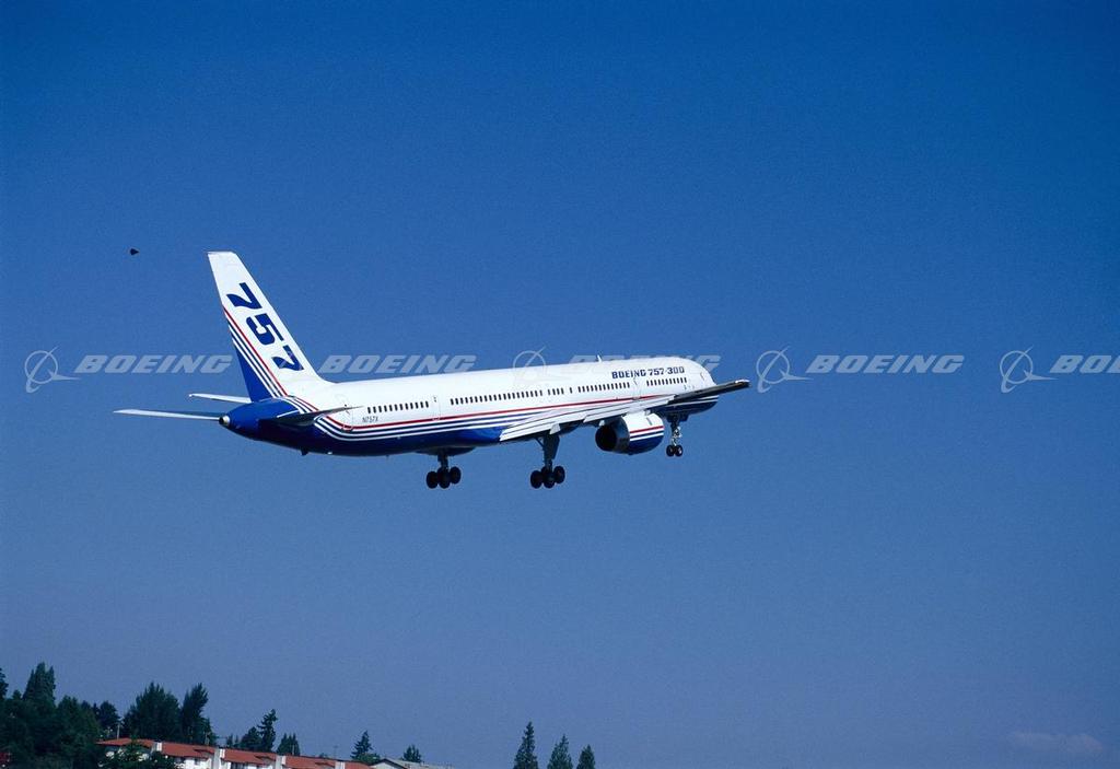 The twin-engine, medium-range Boeing 757 commercial transport first flew Feb. 19, 1982 and was up to 20 percent more fuel efficient than the 727s it was designed to replace. The 757-200, also offered as a freighter, can carry 239 passengers, in two classes, up to 4,520 miles. In September 1996, Boeing launched the 4,000-mile-range 757-300, a stretched model that seats from 243 to 279 passengers. In 18 years of operation, the 757 has carried more than 1.3 billion passengers, more than four times the population of the United States and Canada combined and has flown the equivalent of nearly 25,000 roundtrips between the Earth and the Moon.