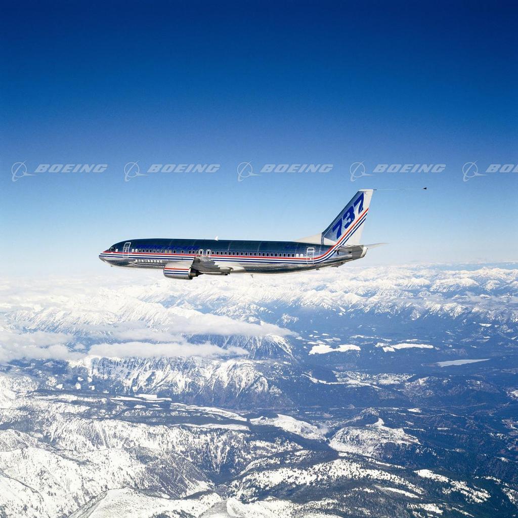 737-300 Flies Above Snowy Mountains