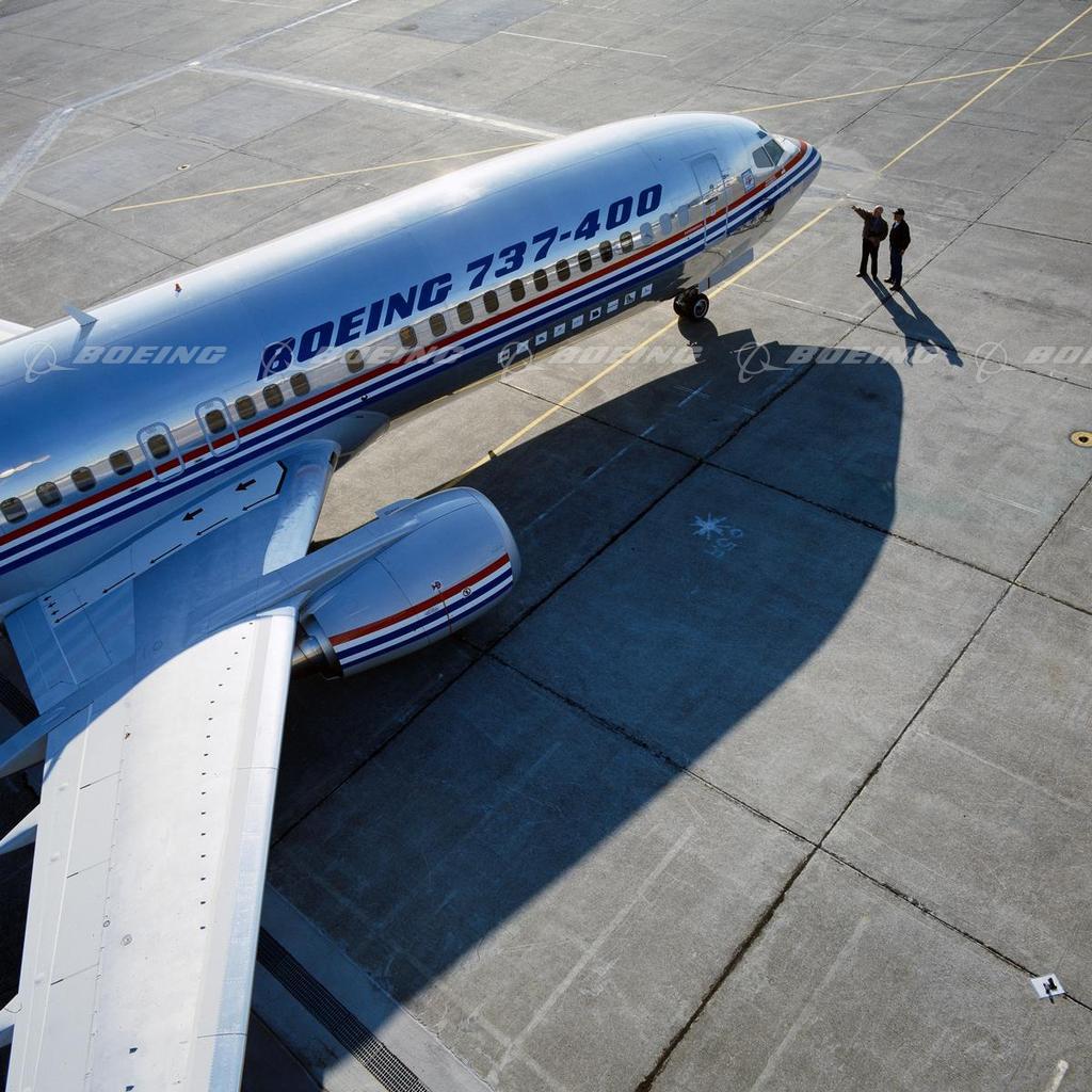 Development of the quieter, more fuel-efficient CFM56-3 series of engines allowed Boeing to improve its most popular jetliners and produce the advanced-technology 737-300, -400, and -500. The engines are larger and mounted forward of the wing struts instead of tucked directly under the wing as in the -100 and -200 versions. Advancements on the new-generation 737s included a stregthened wing to accomodate greater gross weight, tip extensions to the wings and horizontal stabilizers, and stregthened wheels, tires and brakes. The 737-200, -300, -400, -500 have the same handling characteristics so that pilots can use the same Type rating to fly all of them. Airlines' spares inventory and maintenance are simplified by making a substantial number of replaceable parts on the -300, -400, -500 identical to those used on the -200. The 737-400 is about 10 feet longer than the 737-300. It holds 19 more passengers and has a gross weight of up to 150,000 pounds, while retaining the same fuel efficiency, low noise, and low operating costs as its predecessor.