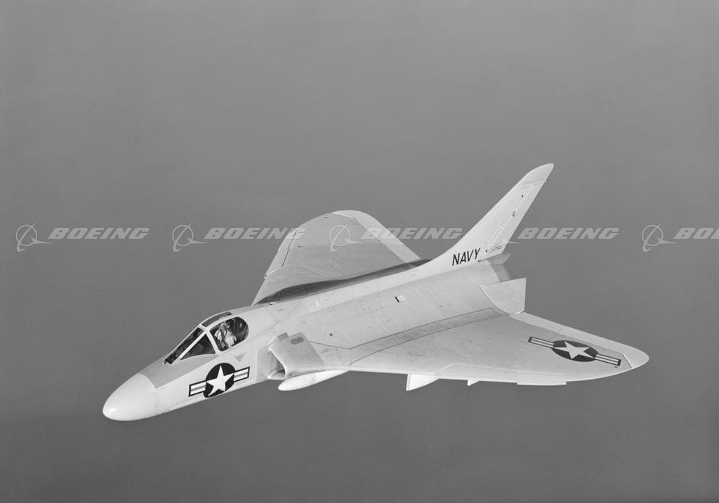 Douglas F4D Skyray (1951-1958): A beautiful delta-wing, single engine jet interceptor, the F4D Skyray was one of the fastest fighters of the 1950s. Named Skyray because of its manta ray like design, the F4D made its first flight on January 21, 1951. The plane was on the leading edge of aircraft design and performance of its day. The U.S. Navy had requested an airplane that could climb to 40,000 feet in five minutes; the Skyray could do it in two. In 1953 it set a new world’s absolute speed record of 753 mph, and earned Douglas a share of the 1954 Collier Trophy. In 1957 it became the first Navy airplane assigned to the Air Force’s Air Defense Command. Called the “Ford” by its pilots, the F4D was not an easy airplane to fly. It had several unforgiving qualities with some unusual controls to overcome them. Up until 1969 the Navy used the F4D to teach its pilots how to handle an unstable aircraft. Total Skyray production was 421.