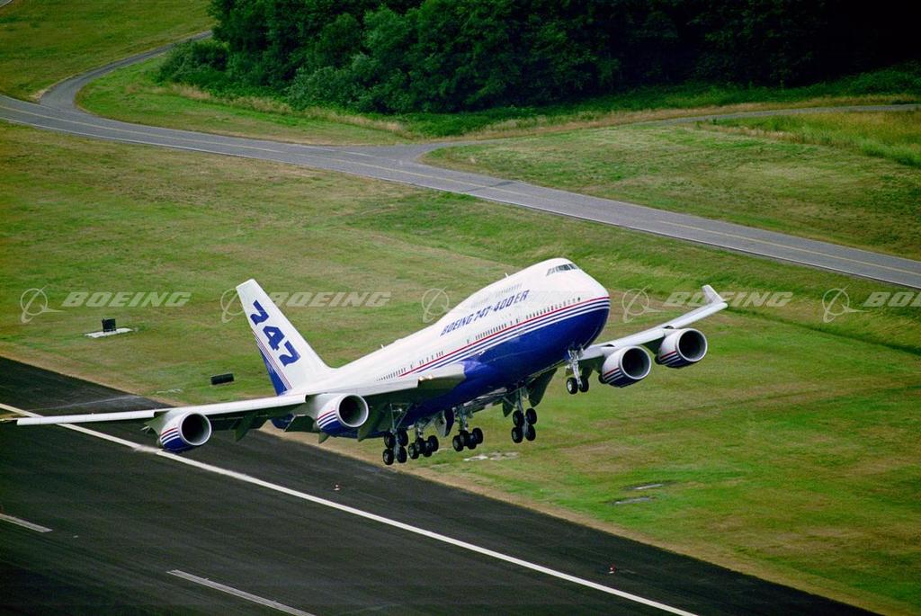 At 31,285 cubic feet (876 cubic meters), the 747-400 has the largest passenger interior volume of any commercial airliner, which is equivalent to more than three houses each measuring 1,500 square feet (135 square meters). The Wright Brothers' first flight at Kitty Hawk, N.C., could have been performed within the 150-foot (45-m) economy section of a 747-400.