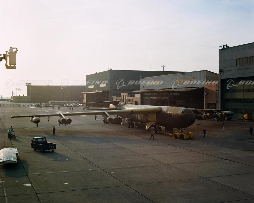 B-47 Stratojet at Rollout Ceremony for B-52D Stratofortress Number1