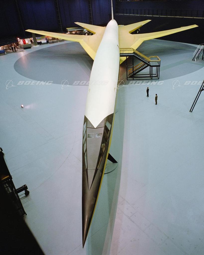 On New Year's Eve 1966, after more than 14 years of study, design work and competition, the U.S. federal government selected Boeing to build the prototype for the country's first supersonic transport (SST). Twenty-six airlines ordered 122 of the transports. The final design featured a double-jointed, needle-shaped nose that would drop during takeoff and landing for improved pilot visibility. Government funding was withdrawn in 1971 before the prototype was finished.