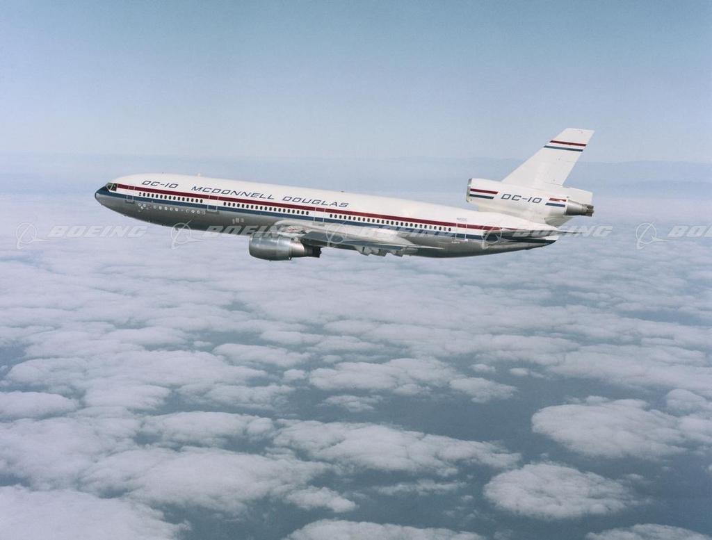 McDonnell Douglas DC-10 (1970-1990): The DC-10 made its first flight on August 20, 1970. Although smaller than the Boeing 747, its wide cabin gave it a passenger capacity up to 380 (depending upon seating configuration). The DC-10 was designed as a multi-range jetliner capable of operations from airports with relatively short runways, such as New York’s La Guardia with a full load bound for Chicago, or from longer runways, like St. Louis Lambert International for a non-stop flight to London. A new generation of turbofan jet engines, which produced more than twice the power but half the noise of the turbojet engines used on the first generation of jetliners, powered the big trijet. The DC-10 was produced in three basic models: the Series 10 for domestic routes, and the Series 30 and 40 for extended range and intercontinental travel. During the plane’s 20-year production run, 386 DC-10s were delivered. In addition, 60 were built as KC-10 cargo/tanker aircraft for the Air Force. Six commercial models of the DC-10 were developed. The Series 10 model was designed for service on routes of up to 4,000 statute miles (6,436 km). The intercontinental range Series 40, powered by Pratt & Whitney JT9D turbofan engines, had a nonstop range up to approximately 5,800 miles (9,322 km). The Series 30, an intercontinental model had a range of approximately 5,900 miles (9,493 km). The DC-10 Convertible Freighter, first delivered in 1973, can be arranged to carry all passengers or all cargo and is available in the basic Series 10, Series 30 or Series 40. The Series 15, launched in 1979, combines the basic smaller airframe of the Series 10 with a version of the more powerful engines used on the longer-range Series 30s. The DC-10 Series 30F, an all-freighter model, was ordered by Federal Express in May 1984. First delivery was made Jan. 24, 1986. This pure freighter version will carry palletized payloads of up to 175,000 pounds (79,380 kg) more than 3,800 miles (6,115 km).