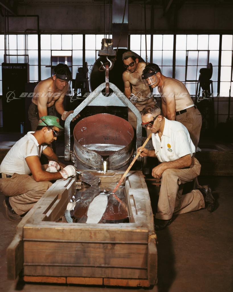 Workers Pouring Kirksite at North American Aviation's Inglewood Foundry