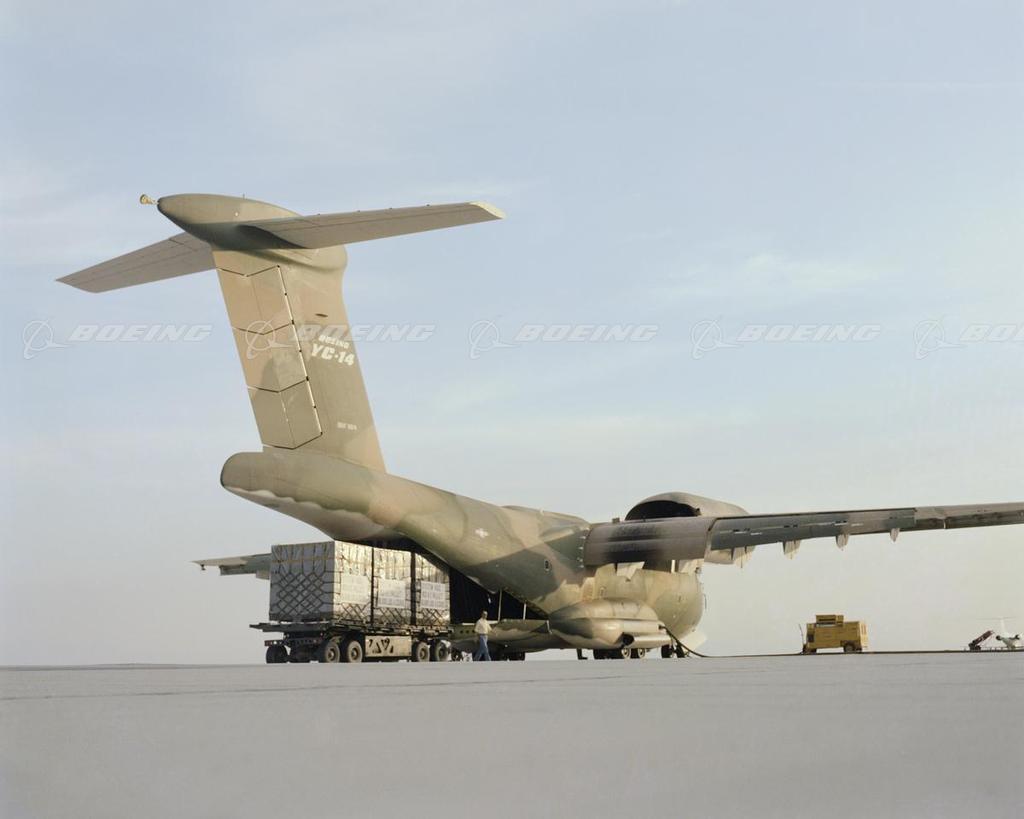 The YC-14 was built to carry troops and equipment into battle zones with short, temporary airfields. Cargo and wheeled vehicles could be loaded into the wide fuselage via a built-in tail ramp. Although the YC-14 never went into production, its two prototypes, built in 1976, introduced significant technological breakthroughs, most notably an upper-surface-blowing (USB) design for high aerodynamic lift. The achievements of the YC-14 contributed in a significant way to advance studies of STOL technology.