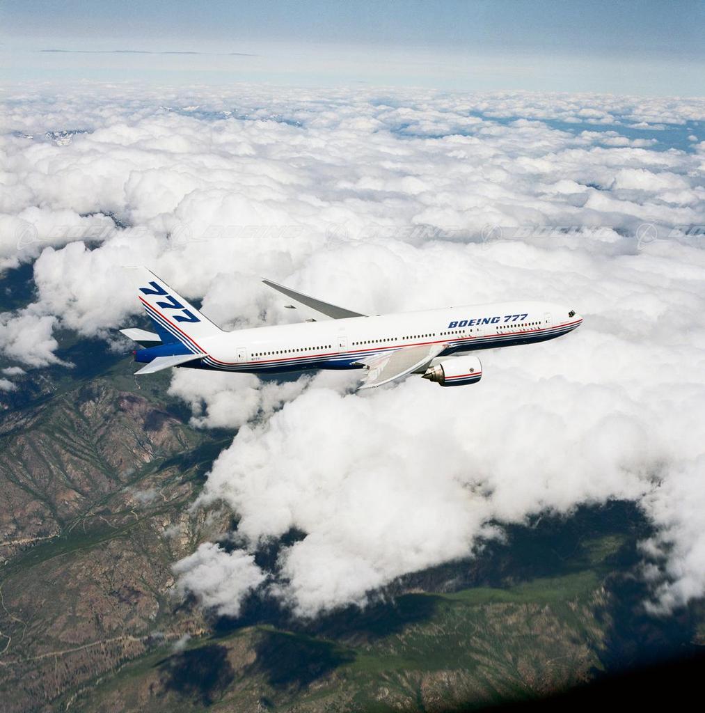 The wide-body Model 777 was the first commercial jet that was 100 percent digitally designed using three-dimensional solids technology. It earned the Collier Trophy for top aeronautical achievement in 1996. The twinjet commercial transport uses fuel efficiently, and its comfortable cabin is very popular with passengers. The 777-200 can take 305 passengers 5,995 miles. The 777-300 can carry 368 passengers 6,899 miles. Launched in February 2000, the 777-200LR and 777-300ER will fly 9,420 or 7,880 nautical miles, respectively.