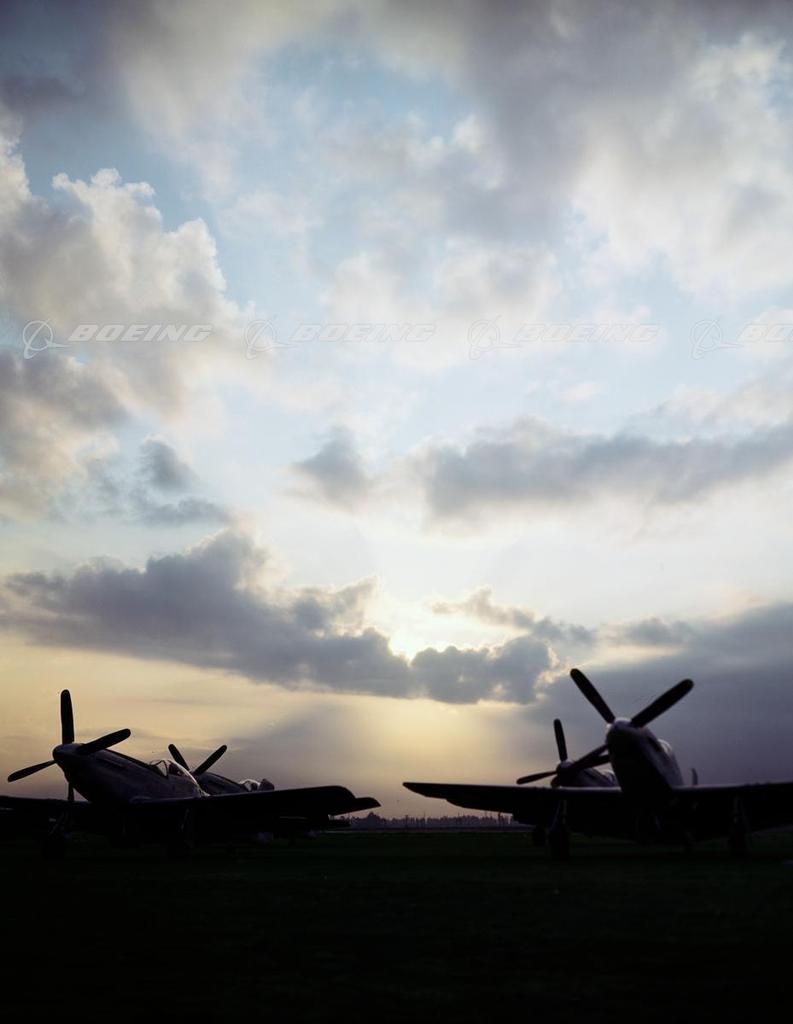P-51D Mustangs Sihouetted Against Early Morning Sky