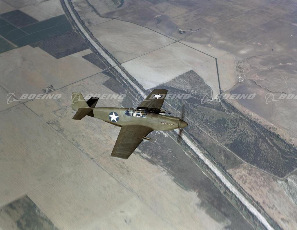 North American Aviation's powerful and agile P-51 was the first single-engine aircraft based in England to penetrate Nazi Germany during World War II. With its superior aerodynamics, the Mustang outperformed enemy planes and went on to establish an impressive aerial record. It first flew in 1941 and was initially designed for the British Royal Air Force for fighter reconnaissance. By war's end North American built 15,575 P-51 Mustangs. The P-51D Mustang had a wingspan of 37 feet and was 32 feet long. Powered by one 1,490- horsepower engine, it flew 437 mph with a range of 2,300 miles.