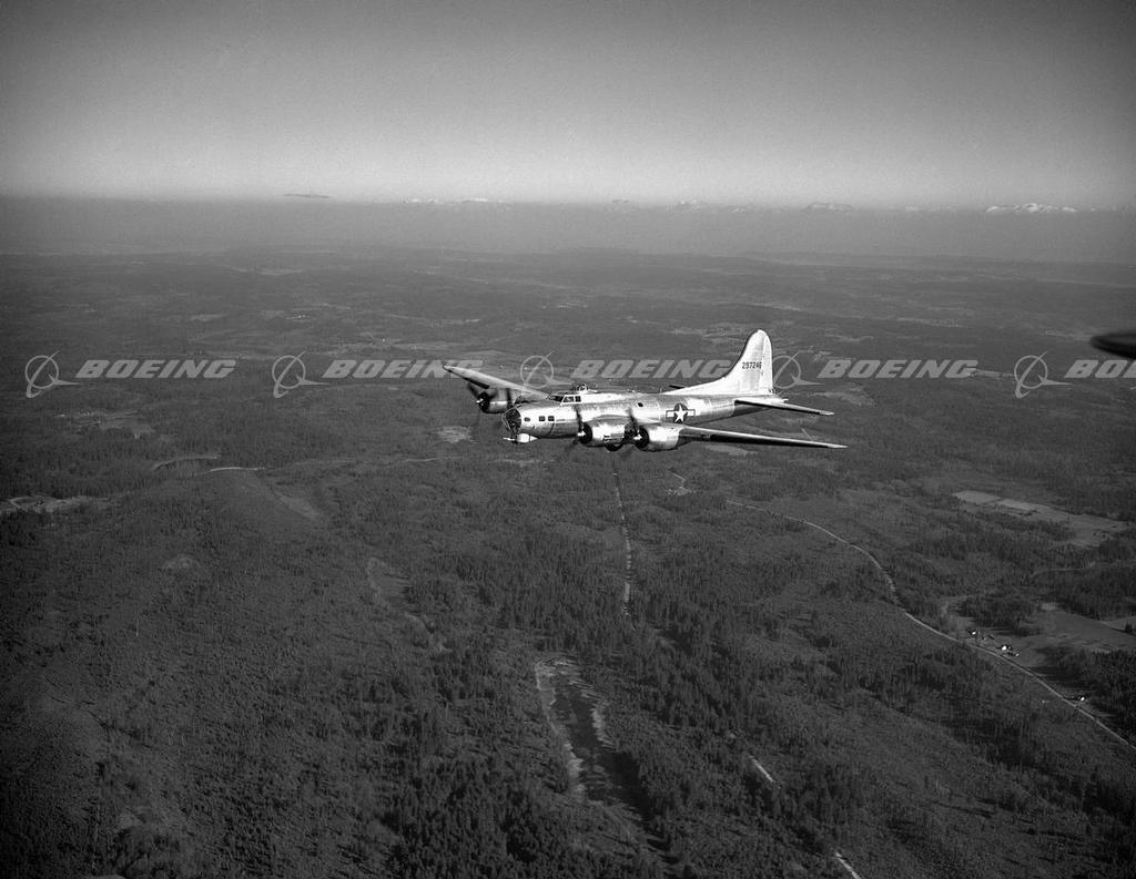 In response for the Army’s request for a large, multiengine bomber, the B-17 (Model 299) prototype, financed entirely by Boeing, went from design to flight test in less than 12 months. The B-17 Flying Fortress was a low-wing monoplane that combined aerodynamic features of the XB-15 giant bomber, and the Model 247 transport. The B-17 was the first Boeing military aircraft with a flight deck instead of an open cockpit and was armed with bombs and five .30-caliber machine guns mounted in clear blisters. Each version of the B-17 was more heavily armed. Described by General H. H. Hap Arnold, as the backbone of our worldwide aerial offensive, the B-17 Flying Fortress served in every World War II combat zone. Boeing, Douglas, and Lockheed Vega produced 12,731 B-17s, and the four-engine bombers became legendary for their ability to stay in the air after taking brutal poundings.