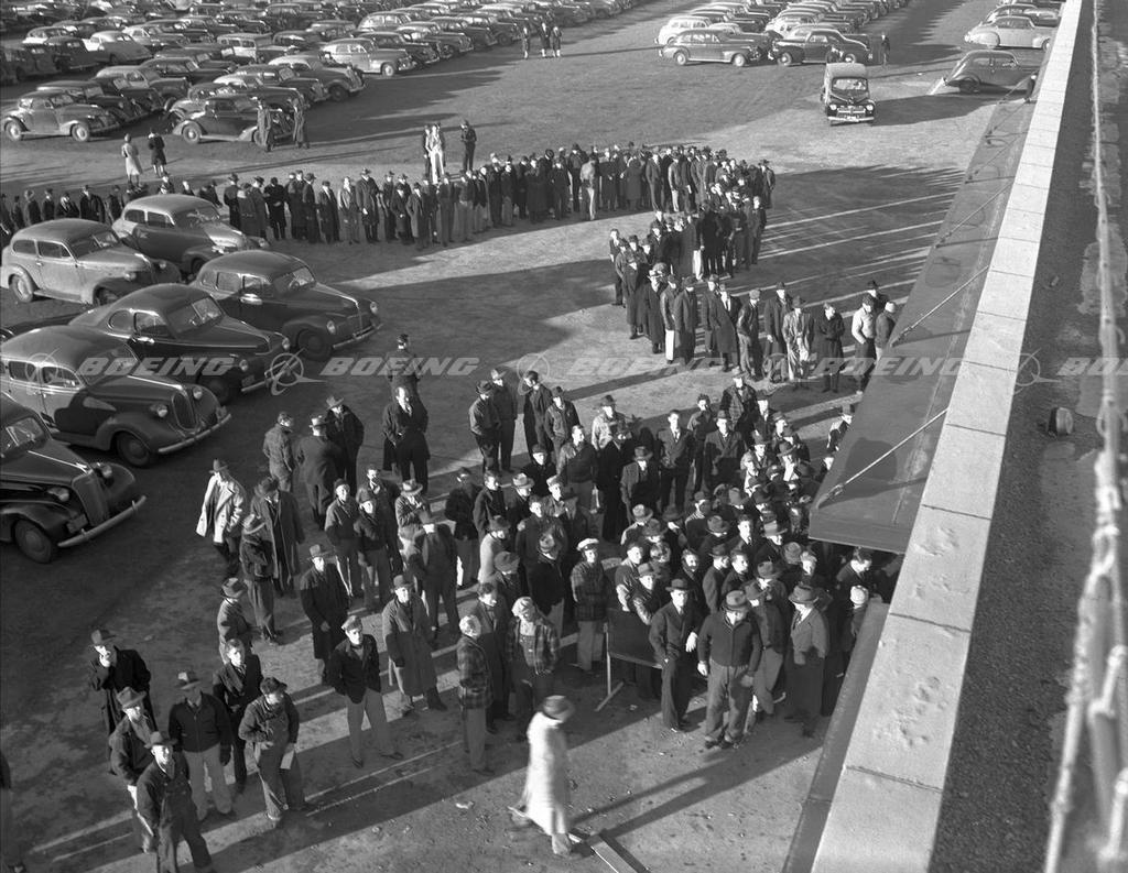 Job Seekers Line Up Outside of the Personnel Building, Stearman Aircraft Plant, Wichita, KS