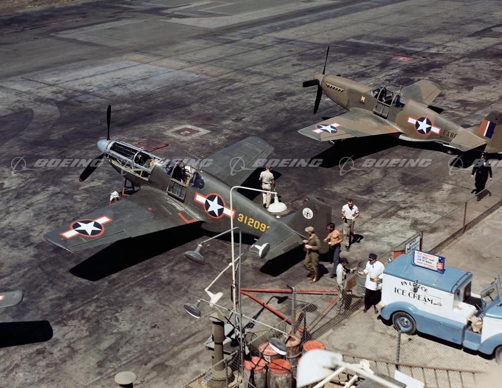 P-51A and P-51B Mustangs on Tarmac with Ice Cream Truck