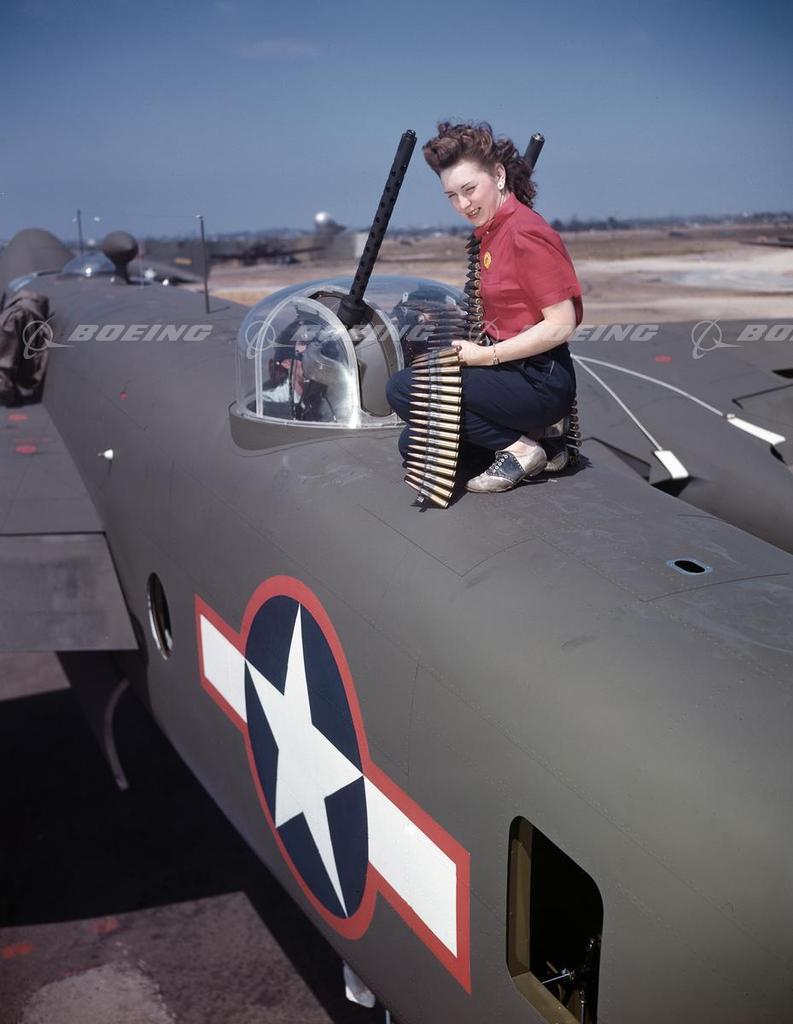Woman Arming a B-25G Mitchell on Ground with Ammo