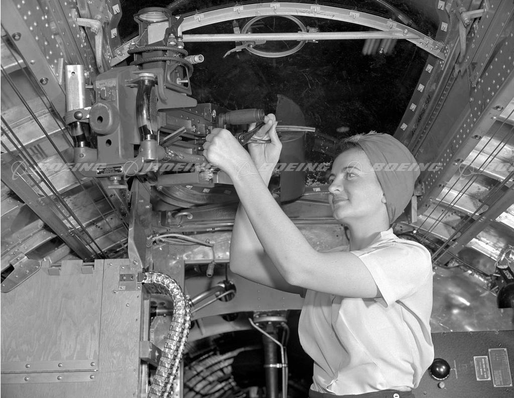Woman Drilling a B-17 Flying Fortress Tail Turret