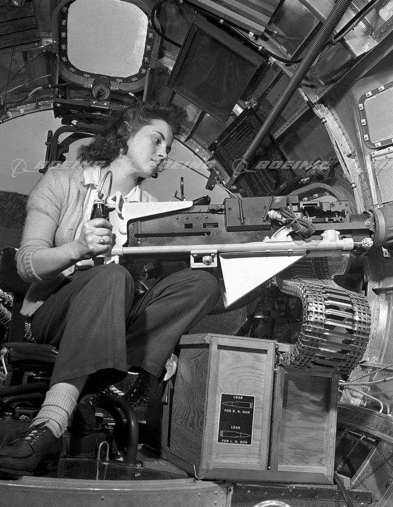Woman Drilling a B-17 Flying Fortress Tail Turret