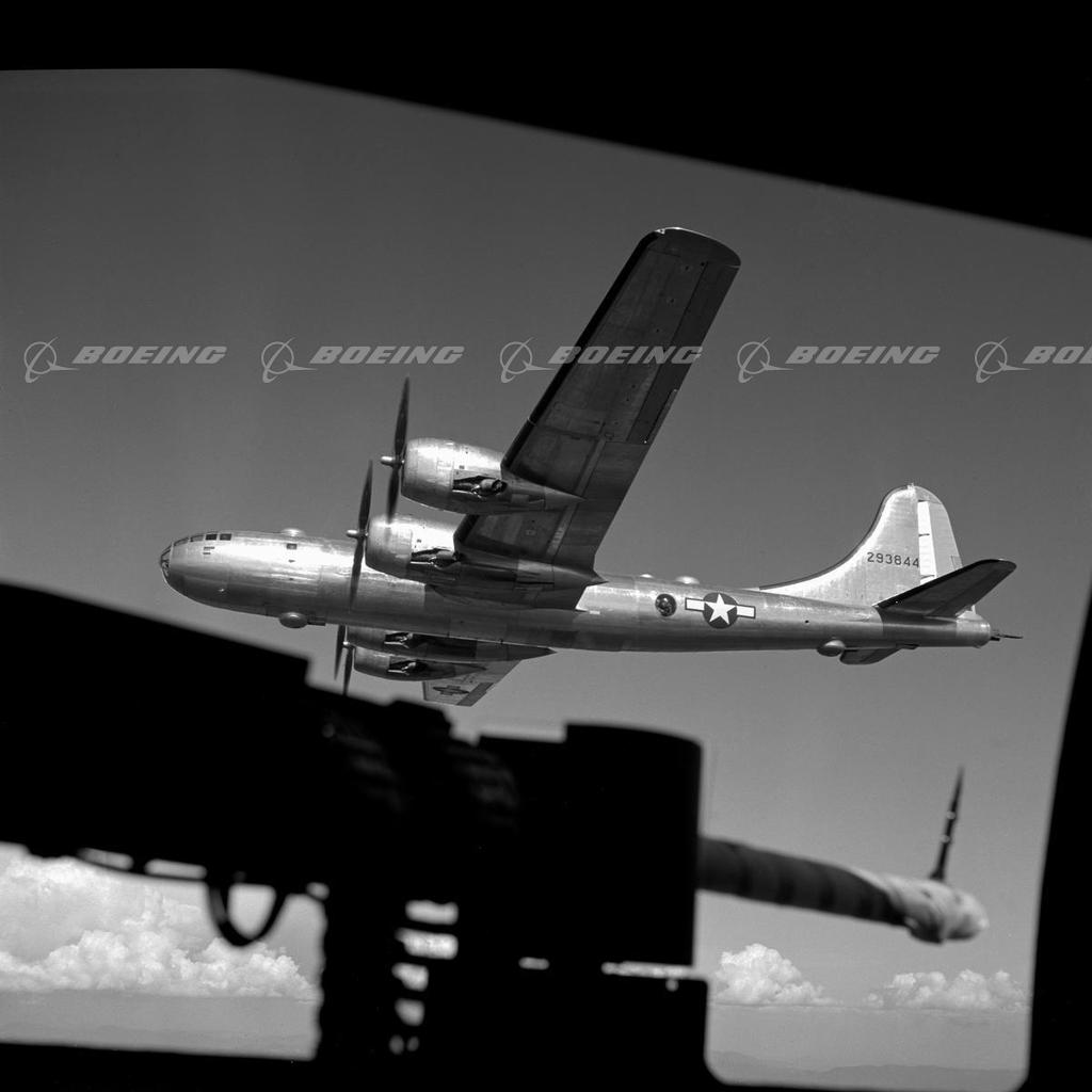 The Boeing B-29 Superfortress, the most technologically advanced airplane produced during World War II, first flew Sept. 21, 1942. The B-29 had many new features, including guns that could be fired by remote control. The crew areas were pressurized and connected by a long tube over the bomb bays. The tail gunner had a separate pressurized area that could only be left during unpressurized flight. At 105,000 pounds, the B-29 was also the heaviest production plane because of increases in range, bomb load and defensive requirements. The B-29 used the high-speed Boeing 117 airfoil, and its larger Fowler flaps added to the wing area as they increased lift. Modifications led to the B-29D, upgraded to the B-50, and the RB-29 photo reconnaissance aircraft. The Soviet-built copy of the B-29 was called the Tupolev Tu-4. A total of 3,970 B-29s were built.