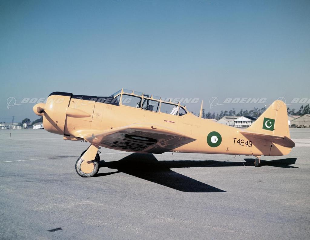 The T-6 Texan two-place advanced trainer was the classroom for most of the Allied pilots who flew in World War II. Called the SNJ by the Navy and the Harvard by the RAF, the T-6 was designed as a transition trainer between basic trainers and first-line tactical aircraft. In all, the T-6 trained several hundred thousand pilots in 34 different countries. A total of 15,495 of the planes were made. Though most famous as a trainer, the T-6 Texan also won honors in World War II and in the early days of the Korean War. The Texan was an evolution of the company's BC-1 basic combat trainer. It was designed by North American Aviation as a low-cost trainer with all the characteristics of a high-speed fighter. Although not as fast as a fighter, it was easy to maintain and repair, had more maneuverability and was easier to handle. A pilot's airplane, it could roll, Immelmann, loop, spin, snap, and vertical roll. It was designed to give the best possible training in all types of tactics, from ground strafing to bombardment and aerial dogfighting, and contained such versatile equipment as bomb racks, blind flying instrumentation, gun and standard cameras, fixed and flexible guns, and just about every other device that military pilots had to operate.