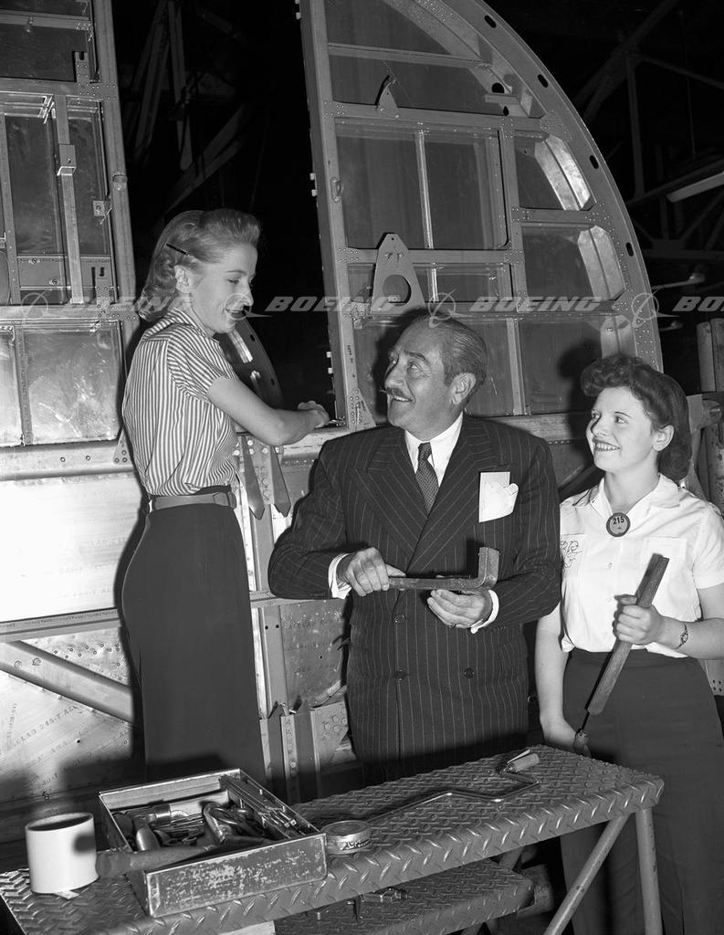 The Allied demand for huge quantities of advanced bombers fueled a rapid increase in production and personnel at Boeing. The large work force of talented engineers and armies of production workers turned out B-17 Flying Fortresses and B-29 Superfortresses in astonishing numbers. Under a unique wartime arrangement, aircraft manufacturers across the country developed techniques for mass production and shared production of the most popular military aircraft, including the B-17s and the B-29s. Thousands of women took up the slack in the work force and helped boost production to an astounding 362 airplanes a month by March 1944.