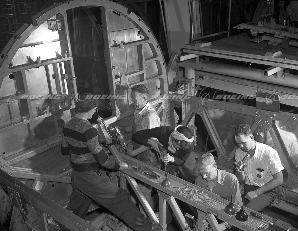 Riveting a B-17 Flying Fortress Fuselage