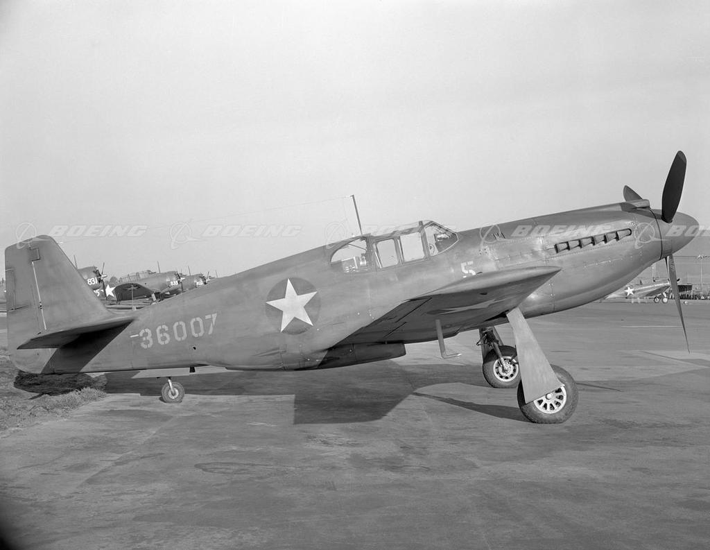 North American Aviation's powerful and agile P-51 was the first single-engine aircraft based in England to penetrate Nazi Germany during World War II. With its superior aerodynamics, the Mustang outperformed enemy planes and went on to establish an impressive aerial record. It first flew in 1941 and was initially designed for the British Royal Air Force for fighter reconnaissance. By war's end North American built 15,575 P-51 Mustangs. The P-51D Mustang had a wingspan of 37 feet and was 32 feet long. Powered by one 1,490- horsepower engine, it flew 437 mph with a range of 2,300 miles.