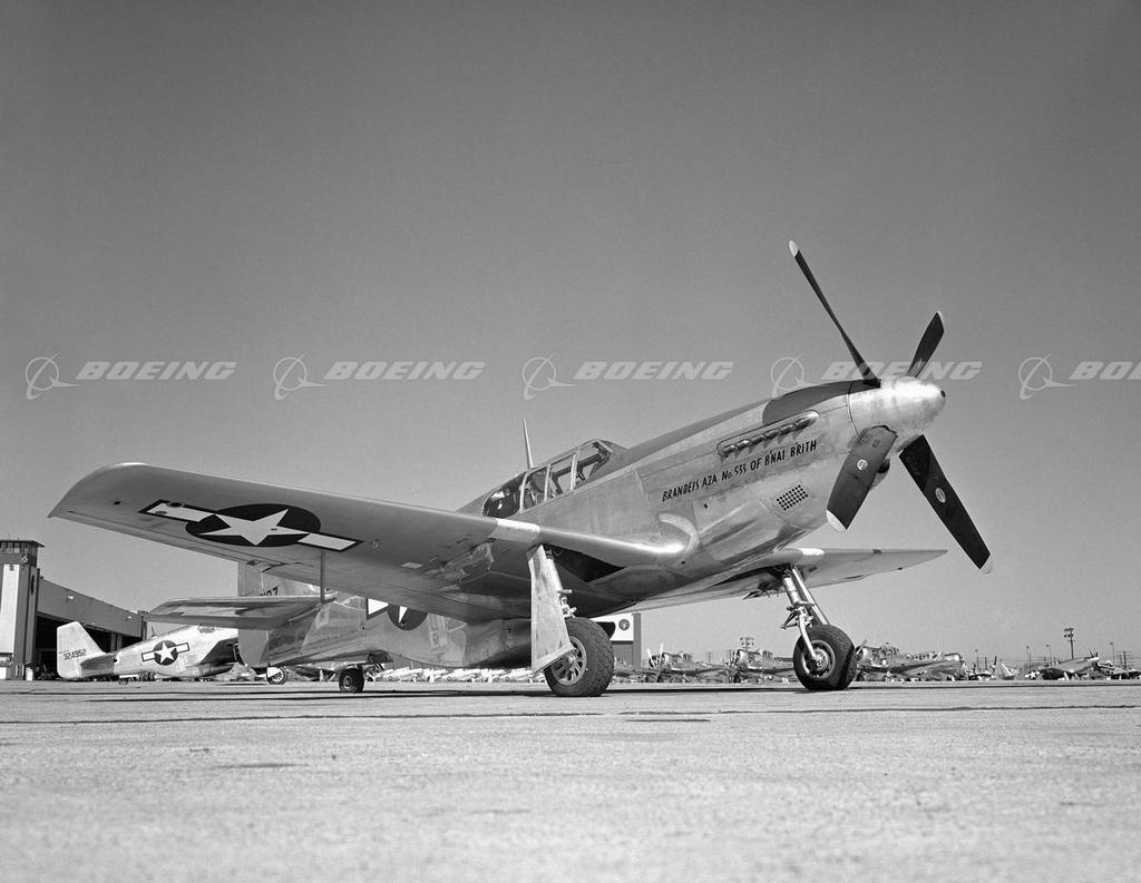 North American Aviation's powerful and agile P-51 was the first single-engine aircraft based in England to penetrate Nazi Germany during World War II. With its superior aerodynamics, the Mustang outperformed enemy planes and went on to establish an impressive aerial record. It first flew in 1941 and was initially designed for the British Royal Air Force for fighter reconnaissance. By war's end North American built 15,575 P-51 Mustangs. The P-51D Mustang had a wingspan of 37 feet and was 32 feet long. Powered by one 1,490- horsepower engine, it flew 437 mph with a range of 2,300 miles.