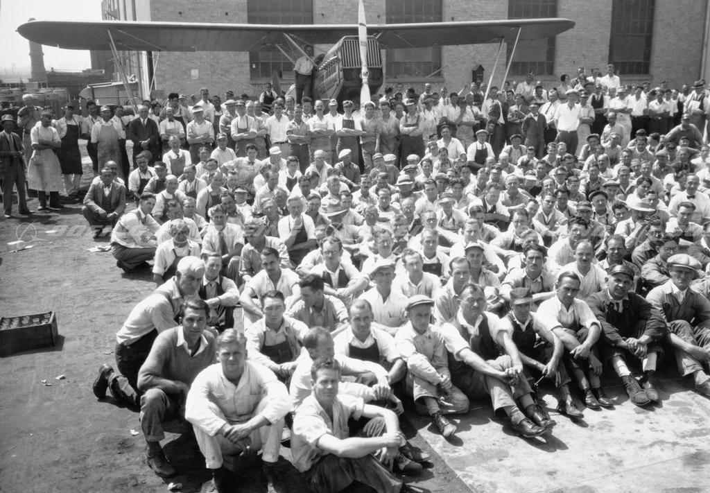 Douglas Aircraft Worker in Wheel Well of a DC-3