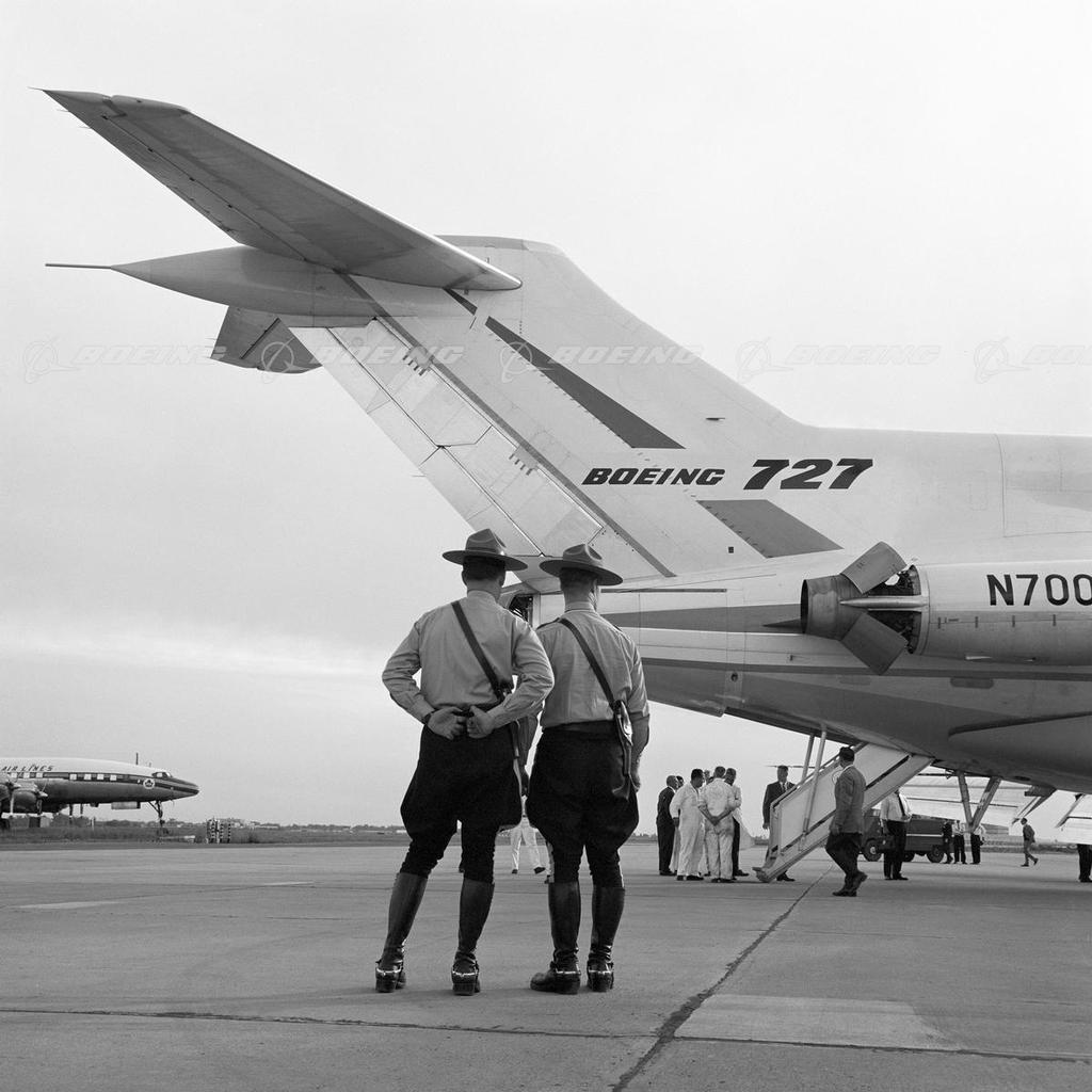 The first 727 rolled out Nov. 27, 1962, bearing the same lemon-yellow and copper-brown color scheme as the Dash 80. To help spur sales, Boeing sent a 727 on a 76,000-mile tour of 26 countries. Originally, Boeing planned to build 250 of the planes. However, after being shown to the world, they proved so popular (especially after the larger 727-200 model, which carried up to 189 passengers, was introduced) that a total of 1,832 were produced at the Renton plant. Variants included a convertible passenger-cargo model with a Quick Change (QC) option - seats and galleys attached to removable pallets.