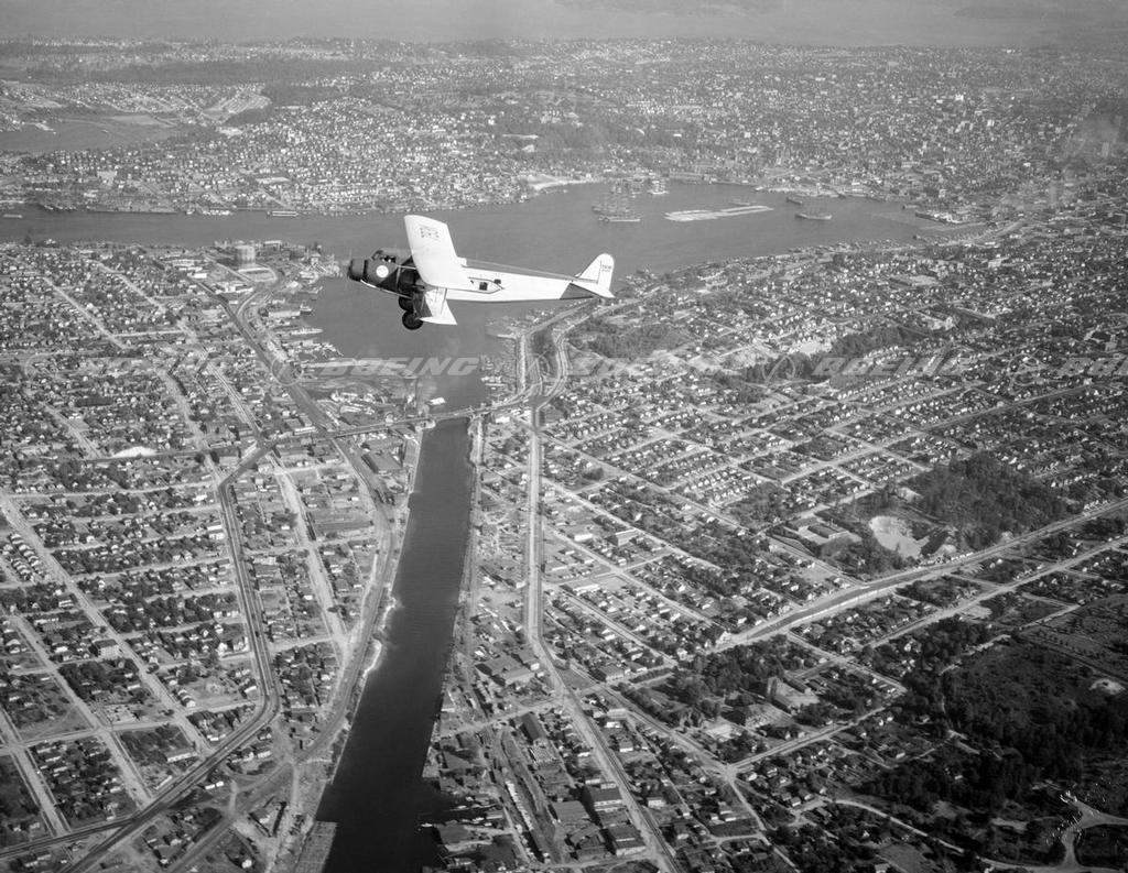 Model 80A in Flight over Clouds, in Front of Mt. Rainier