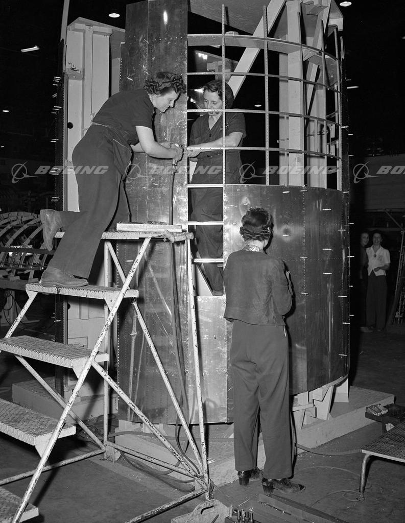 Woman Drilling a B-17 Flying Fortress Tail Turret