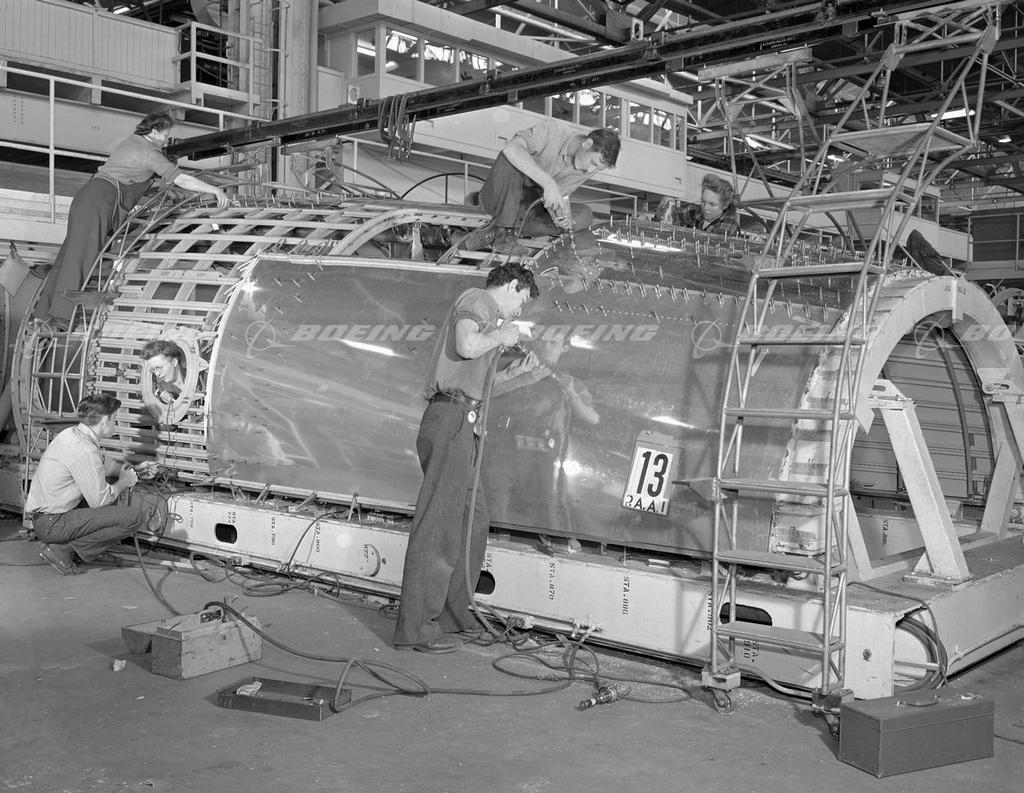 Rasing up a 377 Stratocruiser Tail at Boeing