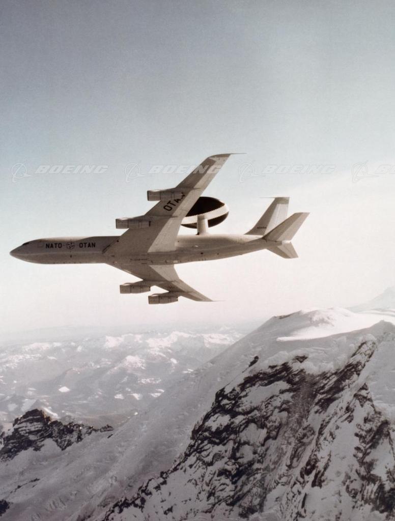 The distinctive rotodome including “eye-in-the-sky” electronics for the E-3 Airborne Warning and Control System (AWACS) first was installed using the 720-320 jet as the aircraft platform. Production of the 707 jet airframe ended in 1991, and the 767 jet airframe was offered as the platform for AWACS. The E-3 AWACS represents the world's standard for airborne early warning systems. It provides airborne surveillance, as well as command and control functions for tactical and air defense forces. Equipped with a “look-down” radar, the AWACS can separate airborne targets from the ground and sea clutter returns. It has a 360-degree view of the horizon, and at operating altitudes can “see” more than 320 kilometers (200 miles) and can detect and track both air and sea targets simultaneously. The 767-200 aircraft has 50 percent more floor space and nearly twice the volume of the 707 aircraft, can carry a heavier payload, has a greater range, and flies higher than the 707 jet. The 767 jet will have mission capability comparable to the 707 AWACS and will be interoperable with the AWACS aircraft currently in service.