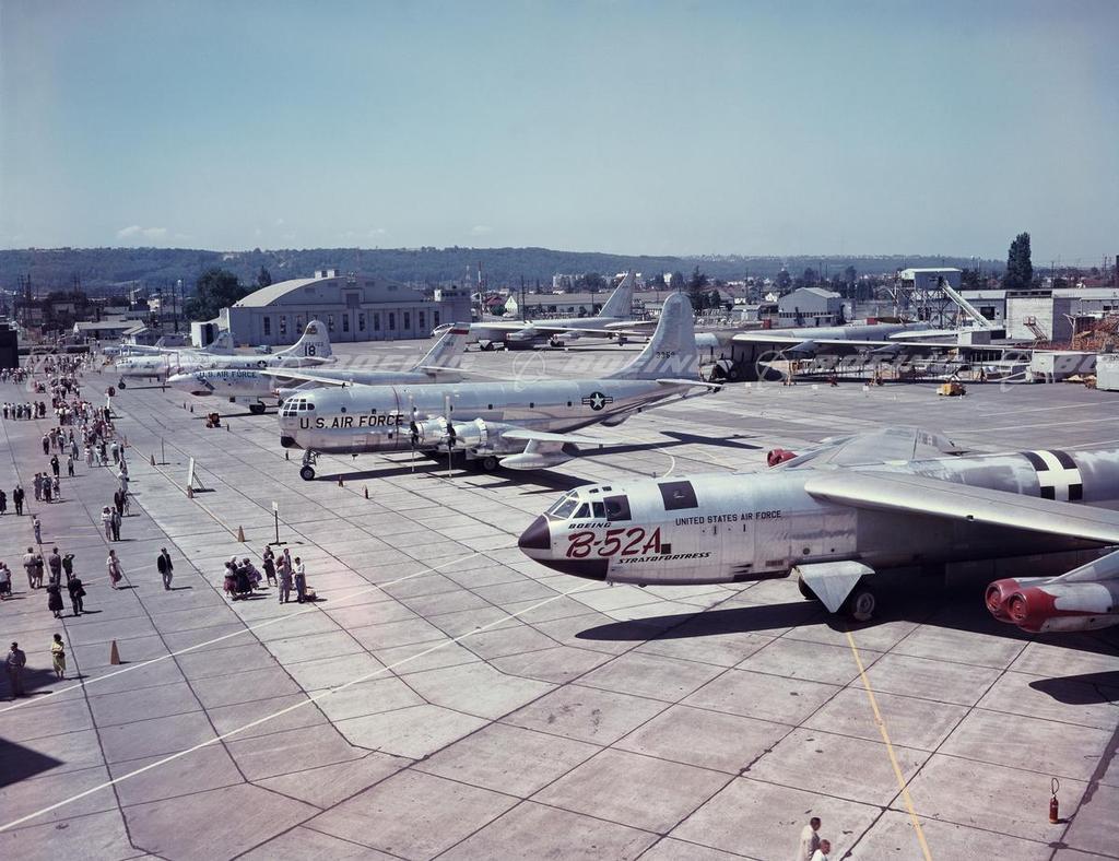 B-52A, KC-97, B-47, B-29, B-17 and XB-52 at a Boeing Field Open House Event, circa 1955