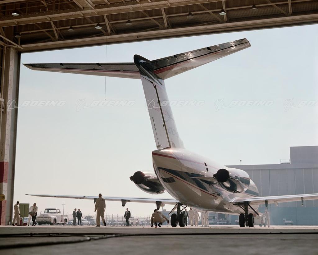 Douglas DC-9 (1965-1982): The DC-9 jetliner was designed to serve smaller airports and shorter routes than those served by the larger Boeing 727. It was developed to be a jet-age DC-3, bringing reliable jet service to any airport in the world. Smaller than the DC-8, the baseline DC-9 carried fewer passengers than some versions of the propeller driven DC-6 and DC-7 airliners. The DC-9 made its first flight on February 25, 1965, and entered service with Delta Airlines just 10 months later. It quickly became one of the most popular airlines ever built. In addition, the U.S. military ordered specially modified versions of the DC-9. The C-9A Nightingale was used by the Air Force to transport sick and injured military personnel. The Navy and Marine Corps flew the C-9B Skytrain II. Three executive transport versions were delivered to the Air Force as the VC-9C. With 976 aircraft produced in eight variations, the DC-9 ended its 17 year production run in 1982. Today, more than 800 DC-9s are still flying.