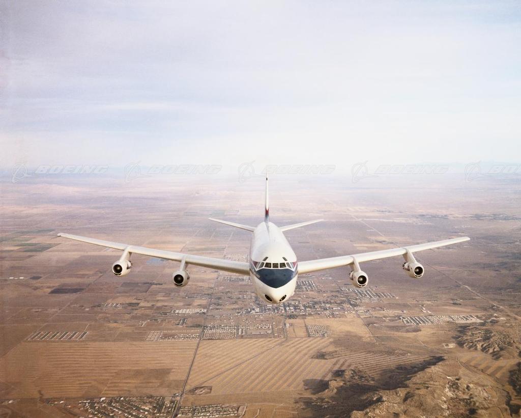 Douglas DC-8 (1958-1972): The Boeing 367-80 prototype jet transport had already made its first flight before Douglas decided to proceed with a jetliner of its own. The DC-8 was the first jet in the DC series and the first Douglas airliner to be completely built at the company’s plant in Long Beach, Ca. Powered by four turbofan jet engines and capable of speeds nearly 600 miles per hour, the DC-8 made its first flight on May 30, 1958. During a 14-year production run, the DC-8 went through seven major variants for a total of 556 aircraft. The plane set world records for speed, cargo capacity and range. During a test dive in 1962, a DC-8 Series 53 became the first commercial airliner to exceed the speed of sound. With a maximum capacity of 259 passengers, the DC-8 Super 63 was the largest commercial jet flying until the Boeing 747 entered service in 1970.