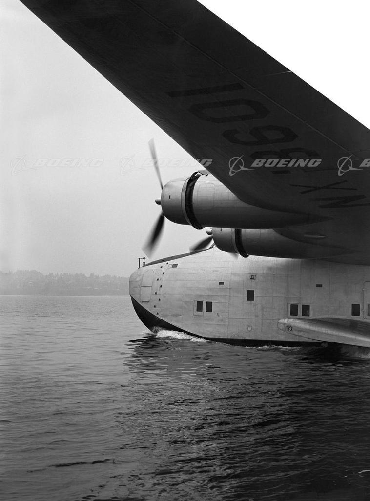 The whale-shaped Boeing Model 314 flying boat was the largest passenger transport of its time, and it took cruise ship elegance into the air. Luxurious amenities aboard the Clipper included a stylish lounge, a dining salon, and a bridal suite. At 106 feet long with a 152-foot wingspan, it was the largest passenger transport in its time. At night, 74 seats converted into 40 bunks. It first flew in 1938 and on June 28, 1939, made the first scheduled transatlantic flight. In 1943, President Franklin Delano Roosevelt celebrated his birthday on a Model 314, flying to Casablanca and back, becoming the first U.S. president to fly while in office.