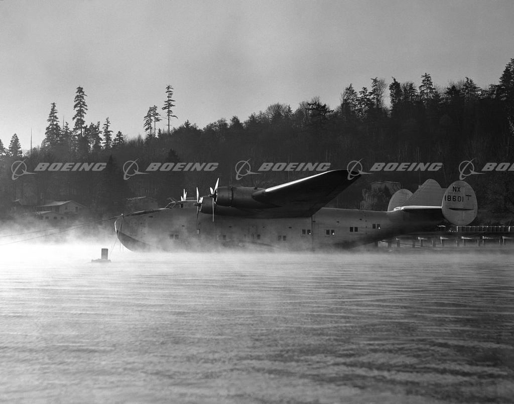 The whale-shaped Boeing Model 314 flying boat was the largest passenger transport of its time, and it took cruise ship elegance into the air. Luxurious amenities aboard the Clipper included a stylish lounge, a dining salon, and a bridal suite. At 106 feet long with a 152-foot wingspan, it was the largest passenger transport in its time. At night, 74 seats converted into 40 bunks. It first flew in 1938 and on June 28, 1939, made the first scheduled transatlantic flight. In 1943, President Franklin Delano Roosevelt celebrated his birthday on a Model 314, flying to Casablanca and back, becoming the first U.S. president to fly while in office.