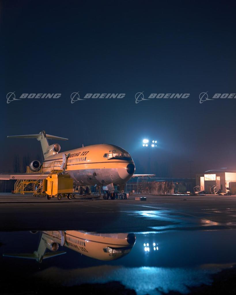 The short-to-medium-range 727 jet, which first flew in 1963, was the only Boeing-built trijet in its time. It was designed to operate out of small airports with shorter runways. The 131-passenger trijet also was the first Boeing commercial jetliner to use an auxiliary power unit (APU). The 727 jet also was built as a freighter and as a ''quick change'' version, which airlines could convert from a passenger transport to a freighter, or a combination of both, as they chose.
