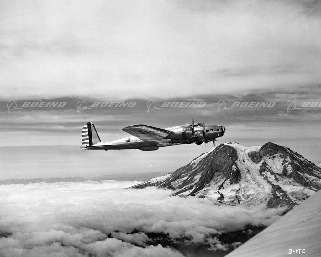 B-17E Flying Fortress Flies Past Mt. Rainier, Air to Air