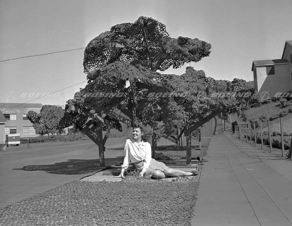During WWII, a 26-acre make-believe village was constructed on top of Boeing's Plant II in Seattle to provide a wartime cover for the facility. Cottages were made of painted canvas, trees were constructed of wire mesh and wood covered with chicken feathers, and the lawn was actually green burlap. Construction of the Wonderland facility atop Plant II required one million board feet of lumber and one and one half million square feet of chicken wire. There were 500,000 feet of support wires and 500 tons of steel structures to support higher elevations. The camouflage extended beyond Plant II to neighboring Boeing Field, albeit in a more sparsely decorated fashion. When the illusory scene was dismantled by Army engineers in 1946, it was necessary to remove 42,000 square yards of dummy streets, 10,000 square yards of concrete dummy houses and walks, 85,000 yards of camouflage texturing from runways, paint from four buildings and blackout paint from one hangar.