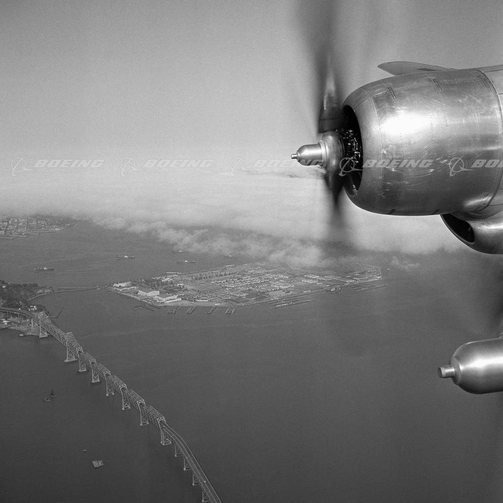 C-97 Stratofreighter over Diamond Head, Hawaii