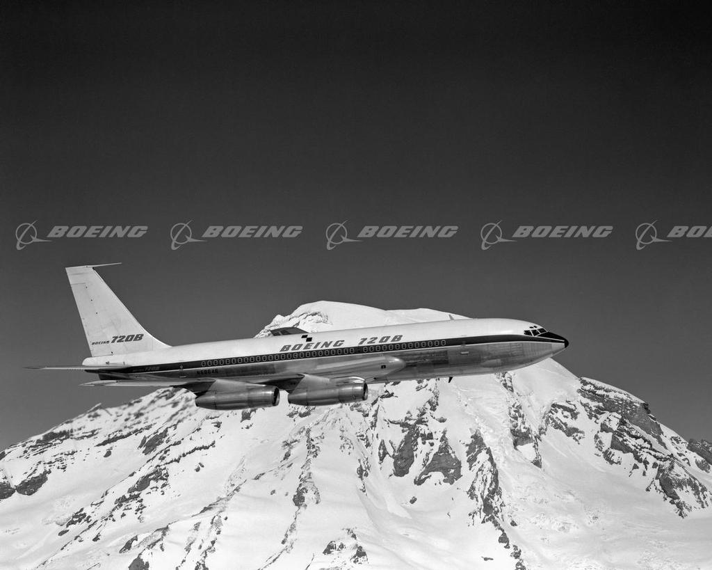 The 720 was basically at 707 modified for short to medium routes and for use on shorter runways. To make the 720 lighter than the standard 707, engineers reduced the fuselage length by 9 feet and redesigned the wing. The 720 wing had a new inboard profile and nearly full-span leading-edge flaps. It carried less fuel, which also lowered its gross weight and slightly increased its takeoff performance and top speed. Boeing built a total of 154 Model 720s, in all versions, between 1959 and 1967.