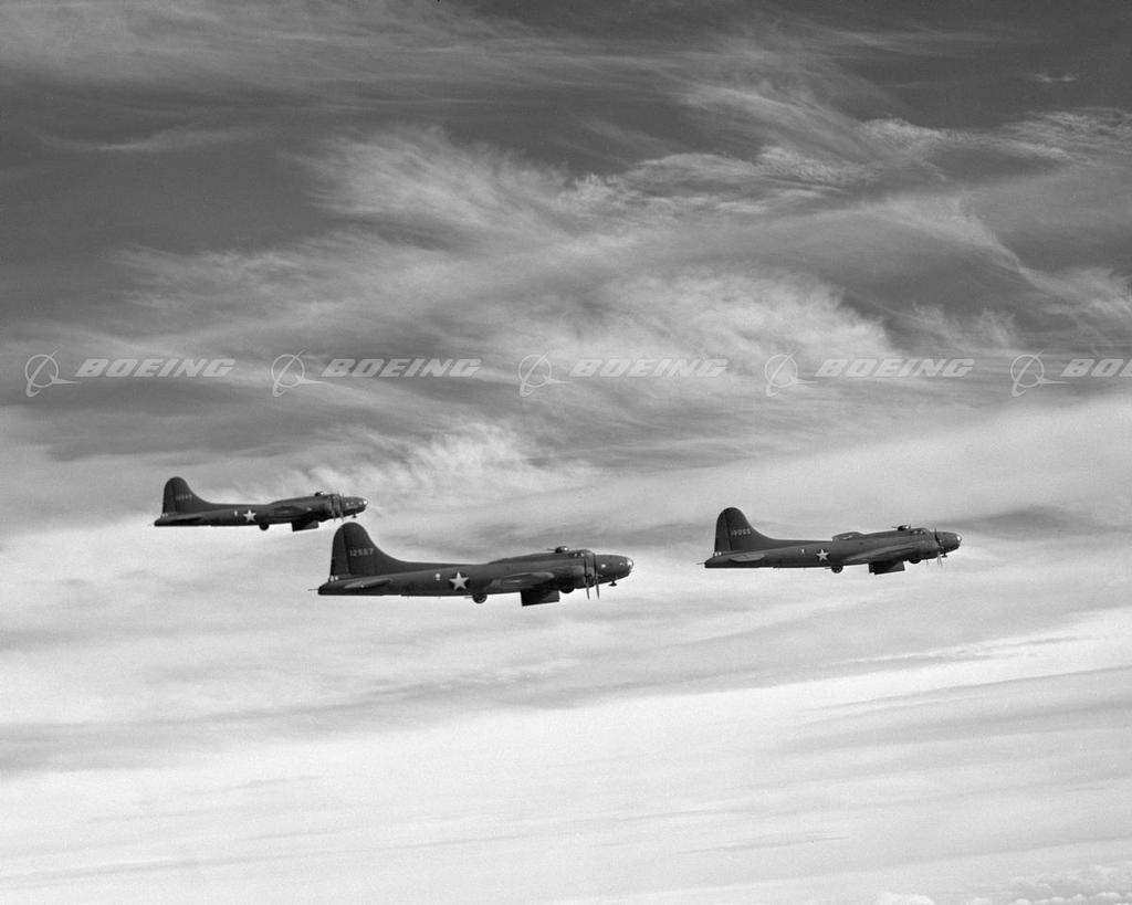 As the storm of World War II shook the world, Boeing-designed B-17 bombers darkened European skies, dropping 640,036 bombs on designated targets. Described by General H. H. Hap Arnold, as the backbone of our worldwide aerial offensive, the B-17 Flying Fortress served in every World War II combat zone. Boeing, Douglas, and Lockheed Vega produced 12,731 B-17s at plants across the country, and the four-engine bombers became legendary for their ability to stay in the air after taking brutal poundings.