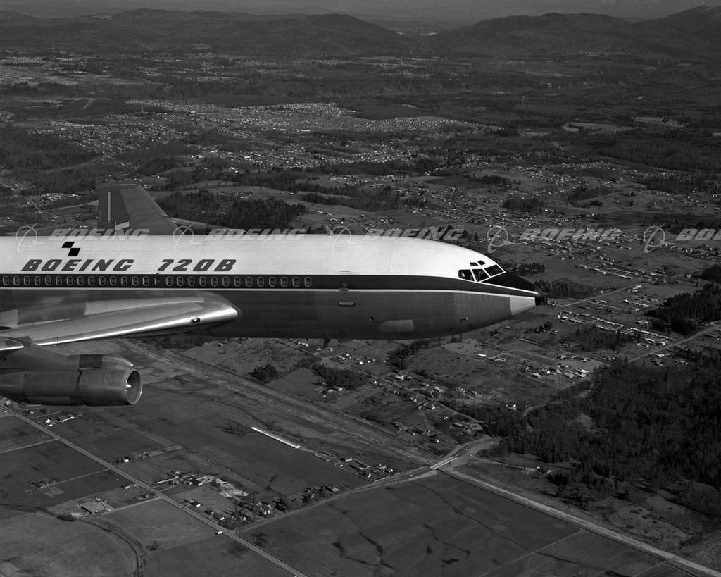 The 720 was basically at 707 modified for short to medium routes and for use on shorter runways. To make the 720 lighter than the standard 707, engineers reduced the fuselage length by 9 feet and redesigned the wing. The 720 wing had a new inboard profile and nearly full-span leading-edge flaps. It carried less fuel, which also lowered its gross weight and slightly increased its takeoff performance and top speed. Boeing built a total of 154 Model 720s, in all versions, between 1959 and 1967.