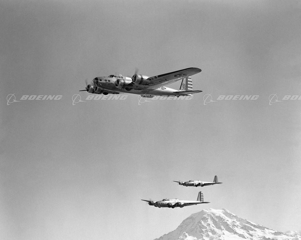 As the storm of World War II shook the world, Boeing-designed B-17 bombers darkened European skies, dropping 640,036 bombs on designated targets. Described by General H. H. Hap Arnold, as the backbone of our worldwide aerial offensive, the B-17 Flying Fortress served in every World War II combat zone. Boeing, Douglas, and Lockheed Vega produced 12,731 B-17s at plants across the country, and the four-engine bombers became legendary for their ability to stay in the air after taking brutal poundings.