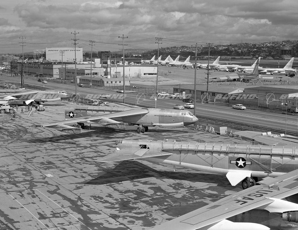 B-52D on Boeing Flight Line with KC-135 and 707s, 1959