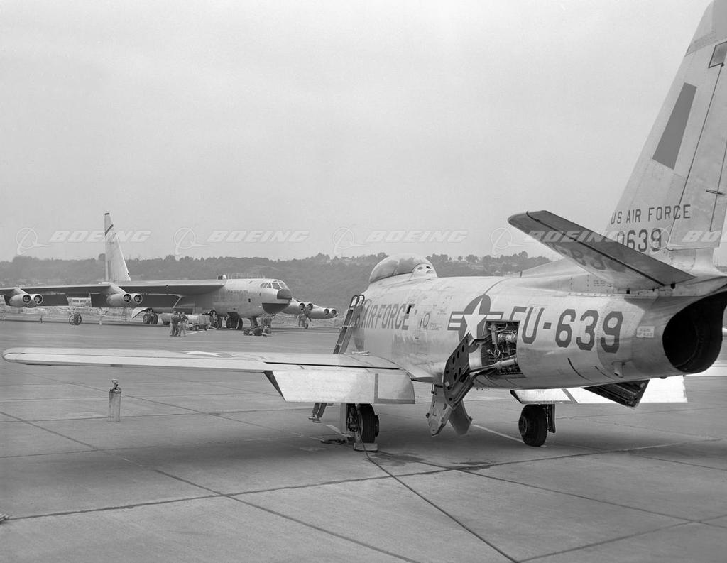 F-86 Sabre Jet and B-52 Stratofortress on Tarmac