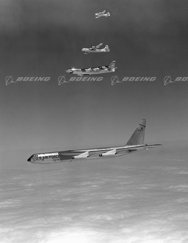 Boeing Bombers, B-52, B-47, B-29 and B-17 in Flight Together