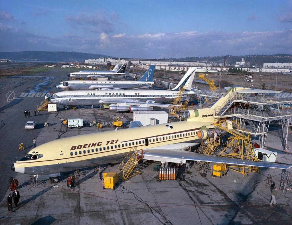 First and Second Boeing 727s on Boeing Flight Line with 707s